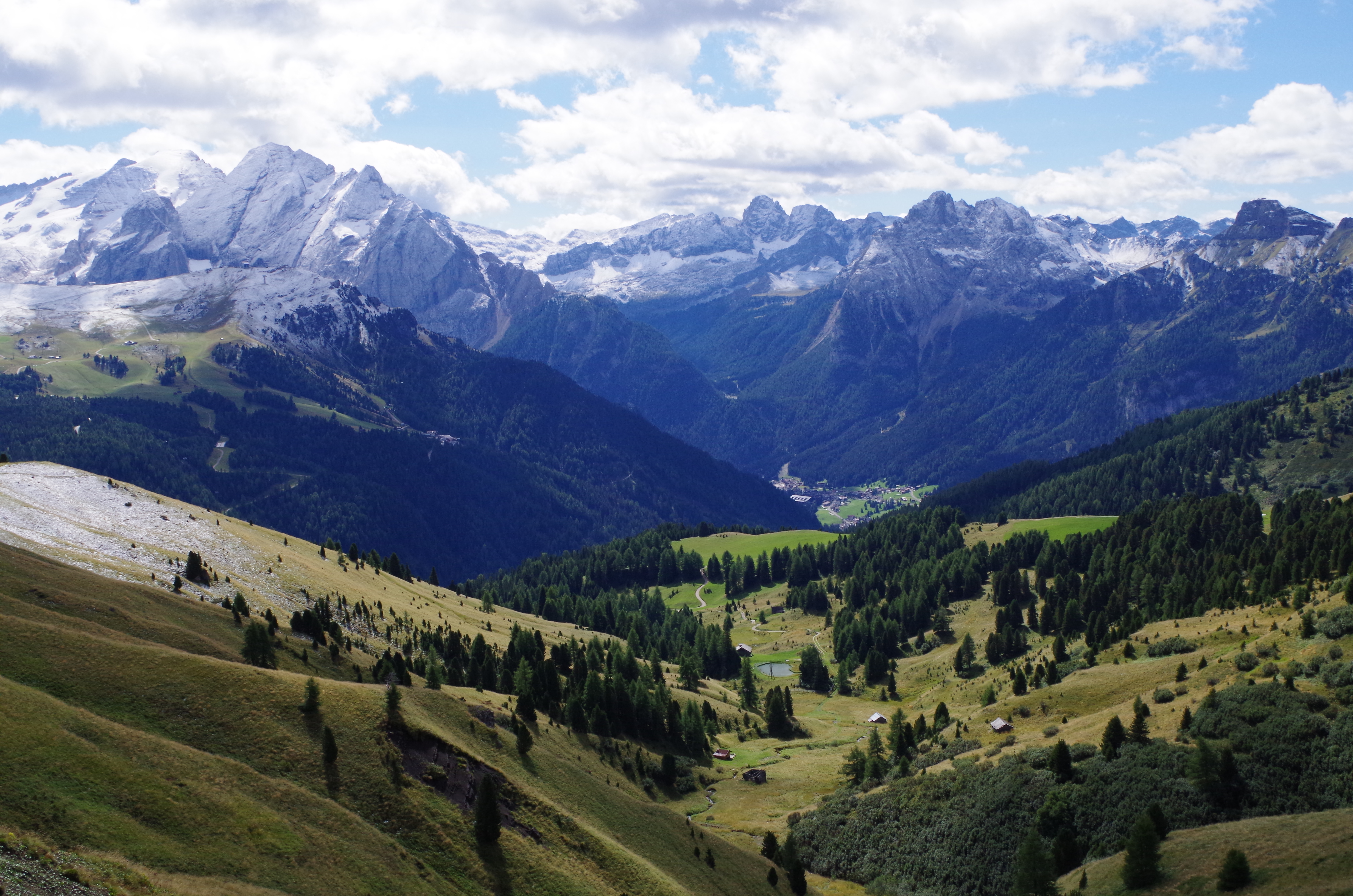 Pour briser l’ennui de l’autoroute j’ai décidé de faire un détour par les Dolomites, histoire de ne pas complètement aplatir mes pneus. Quelques virages dans un monde tout plat… J’enchaîne les cols à bon rythme pour faire sécher mes affaires, Sella, Pordoi, Giau… Mais je dois me résigner à dormir dans un camping ce soir, le bivouac étant interdit et très contrôlé dans la région. En même temps ça sera l’occasion de prendre une douche chaude, ce qui n’est pas un luxe vu les températures hivernales… Le lendemain matin la tente est totalement givrée ! Un bloc de glace pénible à remplier dans son sac, et qui dégorgera de l’eau toute la journée sur la moto… Et dire qu’on est en été !